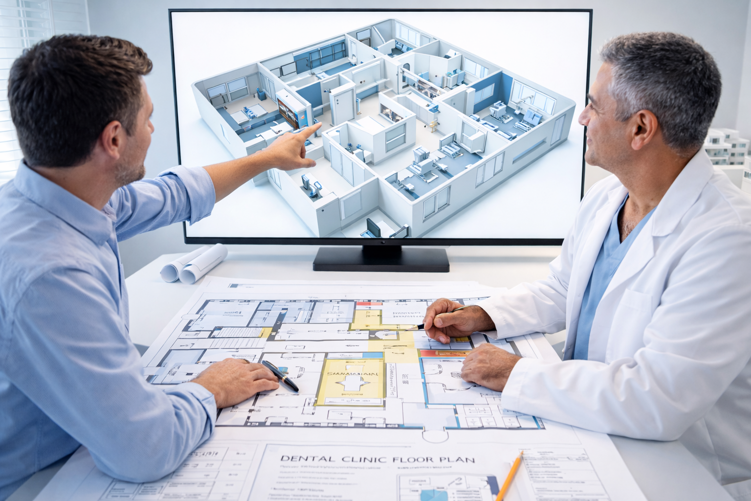 La conception d'un cabinet dentaire ne s'improvise pas. Circuits patients, ergonomie au fauteuil, réseaux techniques (aspiration, compression, climatisation), conformité sanitaire, accessibilité PMR : chaque mètre carré doit être optimisé. Nos architectes spécialisés en espaces médicaux conçoivent des cabinets qui allient performance clinique, confort patient et esthétique professionnelle.